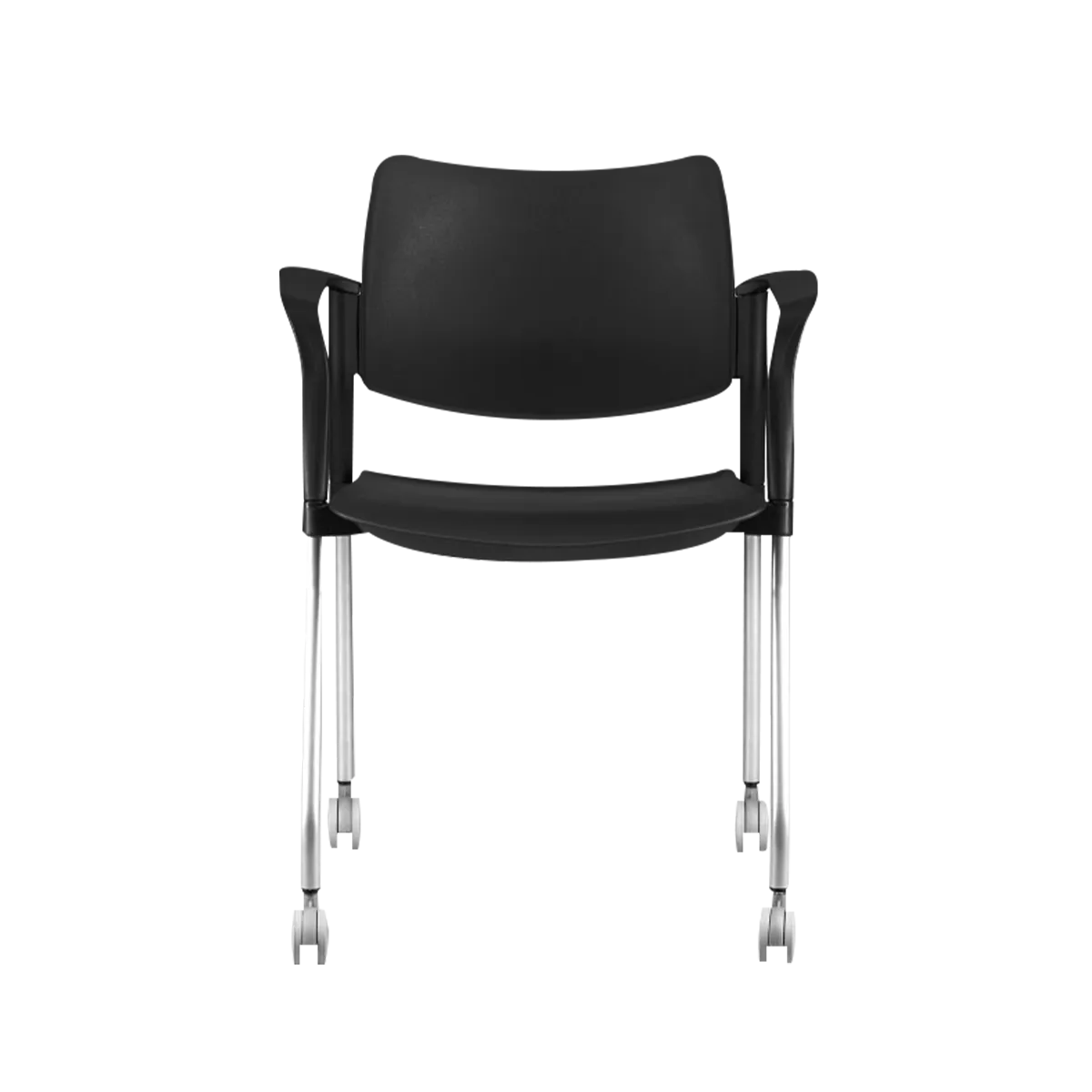 La silla multiusos 5061 es una silla con o sin coderas de 4 patas con base de tubo de acero ø 22 mm, calibre 15, color gris y rodajas (ruedas). Es ideal para salas de espera y de recepción, recibidor y para invitados en oficinas.